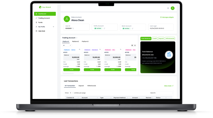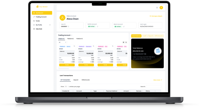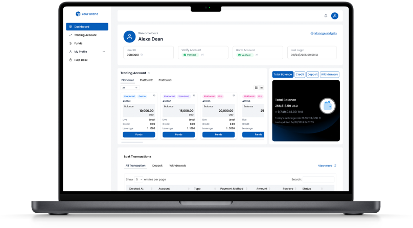 Empower your business with our advanced trading solutions, engineered for flexibility, security, and scalability. Our platform delivers seamless performance through multi-platform support, end-to-end protection, and deep customization via API integration. With an adaptive design, robust Users Management, and integrated marketing tools, we guarantee an optimal experience for everyone.